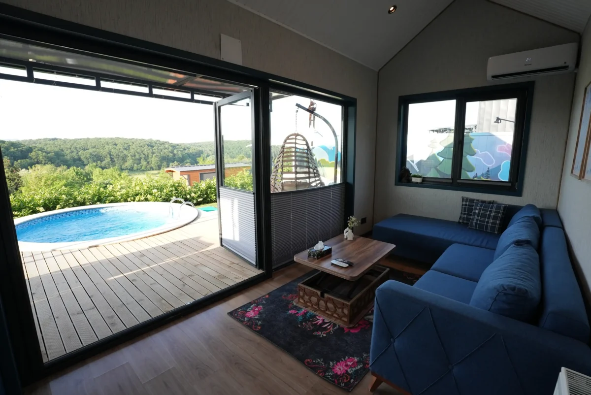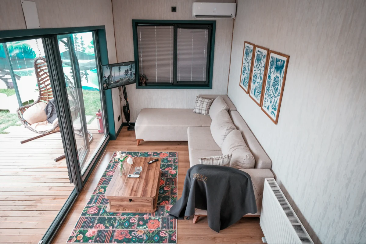 Tiny house'larımızın her birinde, size her mevsimde mükemmel konfor sunmak için modern klimalar bulunuyor. Yazın serinletici, kışın ise sıcak tutan bu klimalar sayesinde iç mekanınızda ideal sıcaklığı kolayca sağlayabilirsiniz. Dışarıdaki hava koşullarına bakmaksızın, tiny house'larınızda her zaman rahat ve keyifli bir ortamda kalmanın tadını çıkarın. Konforunuzu ön planda tutarak, tatilinizin her anını en iyi şekilde yaşamanız için ihtiyacınız olan sıcaklık ve serinliği size sunuyoruz.